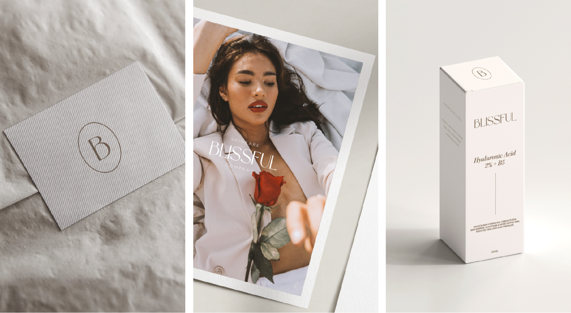 Blissful Skincare’s visual identity is rooted in purity, softness, and balance. Its minimalist layouts, enriched with generous white space, evoke an immediate sense of calm and understated luxury. Delicate serif typography blends seamlessly with clean sans-serif accents, ensuring both elegance and clarity. The color palette centers on soft neutrals and subtle pastels—tones of blush, sand, and pale sage—that communicate purity and warmth. Imagery captures intimate moments of self-care through close-up textures of skin and natural ingredients bathed in gentle, natural light. Every composition is intentionally designed to draw the eye toward the product and the serene confidence it inspires.